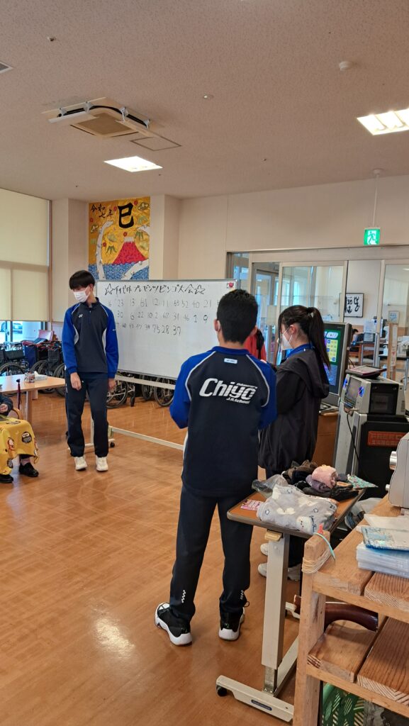 老健🔸中学生職場体験🔸By yuukyuu / 2025年12月25日 11月上旬に千代中学校🏫より職場体験授業で4名の生徒さんが通所リハビリテーションサービスの仕事を体験しに来ました。福祉車両の操作や車いす♿を実際に押してもらったりと安心・安全に配慮したケアを体験してもらいました。少しずつ利用者さんとの距離が縮まってきたところで、午後はビンゴ大会で司会を務めくれました。最後は男子生徒さんのピアノ演奏🎹で大きな拍手をもらい大変盛り上がりました。みんなに温かい目で見守られて和やかな時間でした。生徒の皆さん、お疲れさまでした👏👏👏